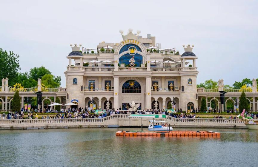 潮玩爱好者通常会打卡泡泡玛特城市乐园。该乐园由公园内原有建筑更新改造而成,吸引了众多年轻消费者和亲子家庭前来与喜爱的潮玩IP互动。而对于公园普通游客来说,乐园的城堡式建筑与朝阳公园的湖畔风景相得益彰,也是一道靓丽的风景。