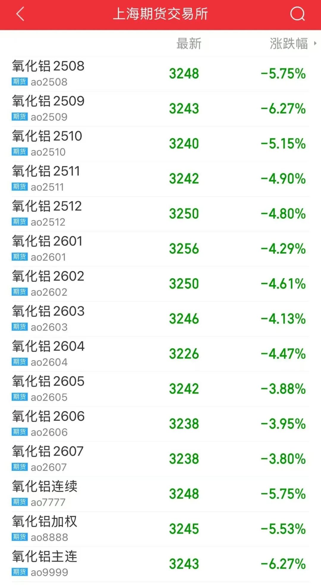 多位分析师告诉期货日报记者,因市场看多情绪走弱,前期领涨的几个品种均大幅回调,氧化铝期货价格也随之跳水。